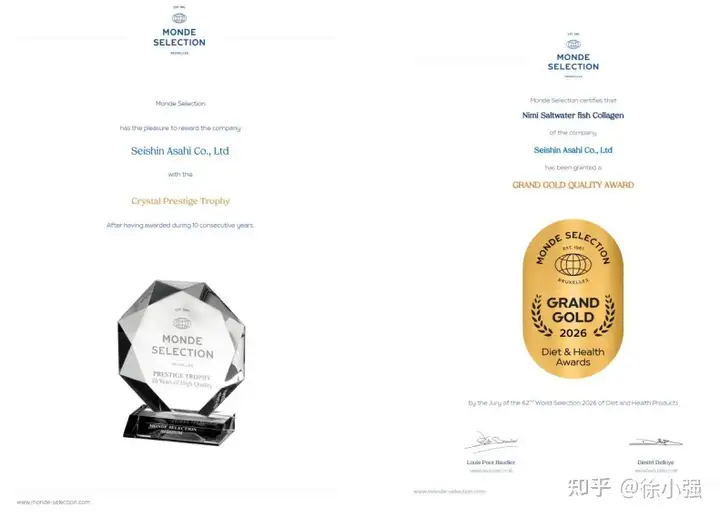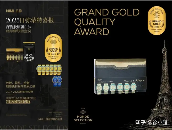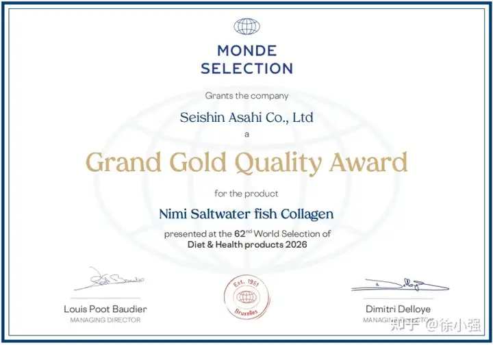 近日,在全球瞩目的世界品质评鉴大会(Monde Selection,又称“国际蒙特奖”)最新一届评选中,日弥NIMI深海胶原蛋白肽系列产品再度斩获蒙特奖最高荣誉特金奖。